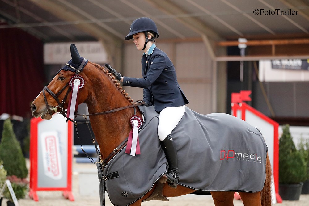 De DP Media prijs is gewonnen door Esme Ekkelkamp en haar merrie Carniska (v. Sydney). Ze reden een foutloos parcours in een super score van 90 punten.