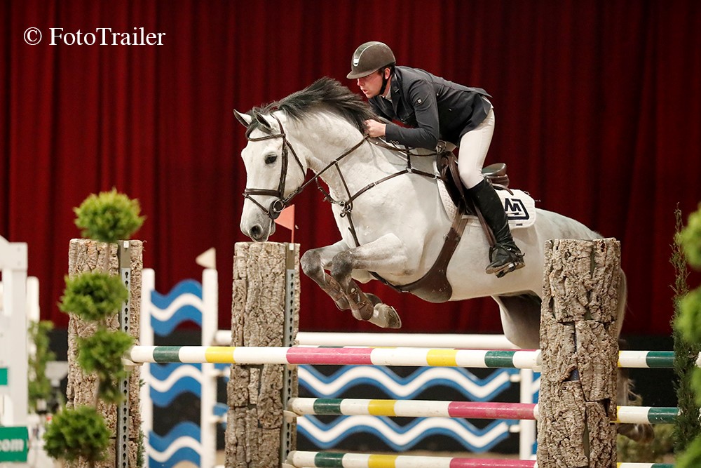 De laatste rubriek van vandaag, de Voermeesters spring cup finale klasse Z/ZZ is gewonnen door Lennard de Boer en zijn 7-jarige hengst Grand Field (v. Calvaro Z).